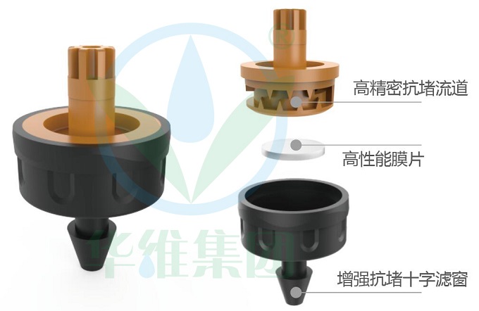 采用渦流式流道設計,抗堵塞、易拆裝清洗,具有灌溉、降溫、加濕等多重功效,也可實施水肥一體化(水溶肥為主)。